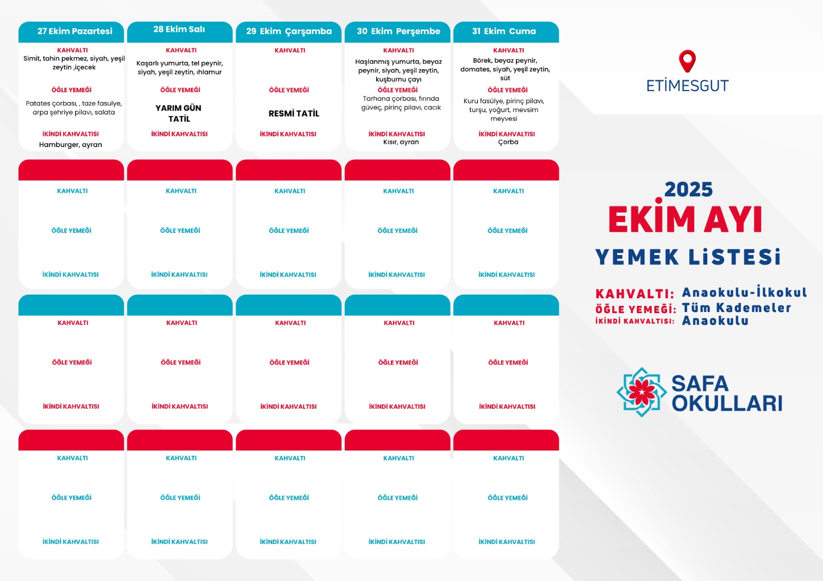 ETİMESGUT / EKİM AYI YEMEK MENÜSÜ