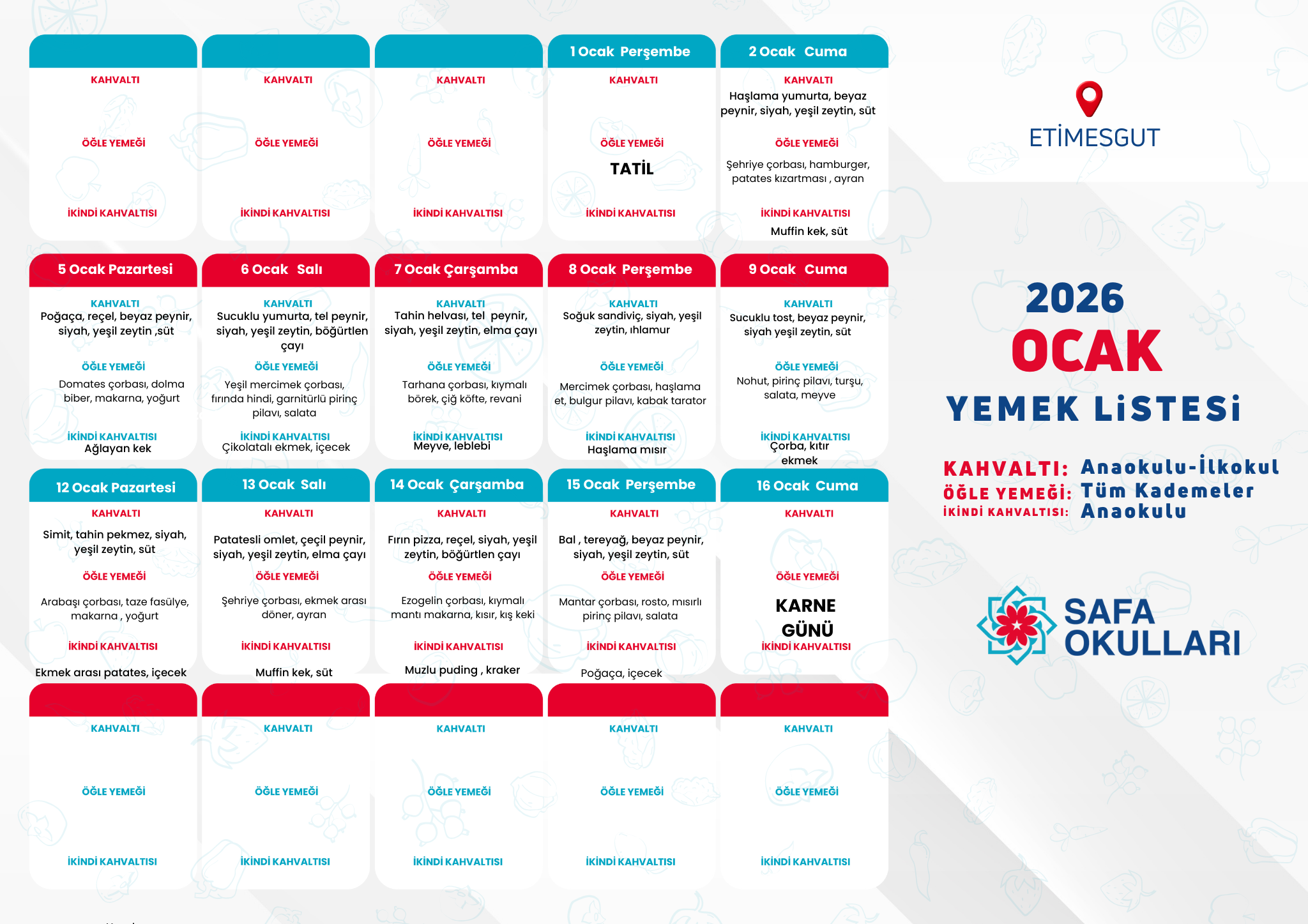 ETİMESGUT / OCAK AYI YEMEK MENÜSÜ